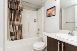 INVESTORS/AIRBNB,FIRST TIME BUYERS, STUDENTS ALERT ! Turnkey 2 bed, 2 bath condo located just steps away from Rogers Place and the ICE District then this unit is for you! This beautiful 1125sqft corner unit has an open concept design perfect for entertaining. Kitchen complemented with espresso cabinetry, large island, and S.S. appliances. Spacious dining room! Living room with corner gas fireplace and sliding glass door to your large patio complete with gas line for summer BBQs. Primary room offers walk-in closet and 3pc en-suite. Great size 2nd bedroom and 4pc main bath. In-suite laundry and storage room, central AC, and HEATED underground parking. Secure entrance to the building. NY style courtyard. Close to downtown core, City Center, LRT station, EPCOR Centre, Grant McEwan University, and Royal Alex Hospital. Great VALUE !
