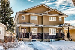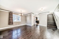Located in sought-after Allendale, this 2015-built half duplex offers modern design and a fully finished basement. The main floor features hardwood flooring, washer/dryer large windows, and a contemporary kitchen with quartz countertops, stainless steel appliances, tile backsplash, and ample cabinetry. The open-concept layout flows into the dining and living areas—ideal for entertaining or everyday living. Upstairs includes three bedrooms, highlighted by a spacious primary suite with walk-in closet and 4-piece ensuite, plus an additional full bath. The fully finished basement with separate entrance, laundry hookup, adds two bedrooms, a full bathroom, and a comfortable living room—perfect for guests, extended family, or added flexibility. Outside, enjoy a fully landscaped and fenced yard with double detached garage and rear lane access. Minutes to the University of Alberta, Whyte Ave, Downtown, and transit. A move-in ready home offering 5 bedrooms and 3.5 baths in a prime central location.