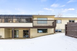 Welcome to this beautifully designed 1337 sq ft adult half-duplex walkout bungalow, perfectly positioned BACKING ONTO A SERENE LAKE & offering both comfort & low-maintenance living. The main floor features 2 spacious bedrooms, a bright & functional eat-in kitchen & an open concept living & dining room, off the dining room leads to a 3 SEASON COVERED DECK past that you'll find an open deck overlooking the park & lake. The primary has a 4pce ensuite & a large walk in closet. Laundry is also on main floor. The FULLY FINISHED WALKOUT BASEMENT has a 3rd bedroom, 4pce bathroom, utility room & large rec-room perfect for guests & hobbies. Completing this home is a double attached garage. Residents also enjoy access to a full-service clubhouse featuring a kitchen, dining area & comfortable lounge, perfect for social gatherings & community events. With it's thoughtful layout, peaceful lake setting & maintenance friendly design, this home offers an EXCEPTIONAL ADULT LIFESTYLE.