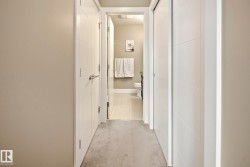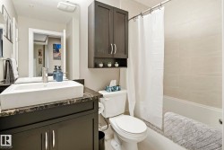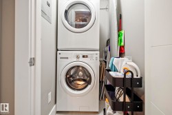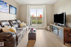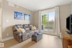 Trendy PLUS convenient location in Ellerslie. West-facing 2 bed, 2 bath condo offering just under 900 sq ft of bright, open living space in a quiet, CONCRETE AND STEEL building. Enjoy afternoon and evening sun with views of beautifully landscaped grounds. The sleek kitchen features built in desk area, brand-new WiFi-enabled stove and dishwasher, granite countertops, gleaming laminate flooring and a spacious layout perfect for entertaining. Insuite laundry. This unit includes two titled underground, heated parking stalls and access to fantastic amenities including a social room, 2 rooftop patios, fully equipped gym, guest suite, and ample visitor parking. No more hot summer nights with central A/C. Located steps from shopping, local restaurants, and all daily conveniences. Easy access to Hwy 2 and the airport makes commuting a breeze. Pride of ownership is evident in this pristine home—ideal for professionals, empty nesters or first time home buyer. You won't be disappointed with the convenience and style!