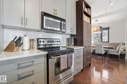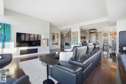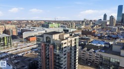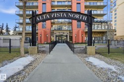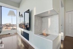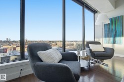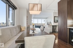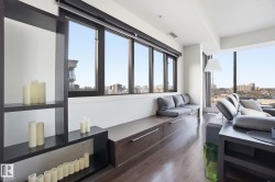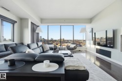 Exceptional luxury sub-penthouse defines modern downtown living. Completely custom & professionally redesigned in 2008, this one-of-a-kind residence remains a Gem in the Edmonton market. Spanning 1,582sqft, the thoughtfully designed floor plan offers two spacious bedrooms & two full bathrooms. This 11th-floor corner unit showcases breathtaking west-facing city views through floor-to-ceiling windows, soaring 10-foot ceilings, & a sleek EcoSmart ventless fireplace. The open-concept dining and entertaining area flows seamlessly into a chef-inspired kitchen with premium cabinetry and high-end appliances. Enjoy a private south-facing balcony with gas BBQ access from both the primary bedroom and kitchen. Included are two side-by-side titled parking stalls and two storage units. Alta Vista North offers a fitness room, guest suite, social room & central air conditioning. Ideally located in Railtown’s most sought-after building, directly across from Grant MacEwan.