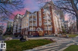 RIVER VALLEY VIEWS | VICTORIA PROMENADE | EXECUTIVE CONDO Live in one of downtown Edmonton’s most sought-after buildings! This sun-soaked, south-facing 2 bed, 2 bath executive condo offers over 1,000 sqft of beautifully updated living space. Enjoy river valley views from your private patio retreat—perfect for morning coffee or relaxing evenings. The open-concept layout features new floors, fresh paint, and thoughtful upgrades throughout. The oversized primary suite includes a walk-in closet and spacious ensuite, while the second bedroom and full bath offer great flexibility for guests or a home office. Just steps to parks, trails, dining, the Promenade, and all downtown amenities—this is urban living at its finest. Heated underground parking & Storage included. A rare opportunity in a truly iconic building. (photos digitally staged or modified)