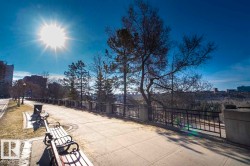 RIVER VALLEY VIEWS | VICTORIA PROMENADE | EXECUTIVE CONDO Live in one of downtown Edmonton’s most sought-after buildings! This sun-soaked, south-facing 2 bed, 2 bath executive condo offers over 1,000 sqft of beautifully updated living space. Enjoy river valley views from your private patio retreat—perfect for morning coffee or relaxing evenings. The open-concept layout features new floors, fresh paint, and thoughtful upgrades throughout. The oversized primary suite includes a walk-in closet and spacious ensuite, while the second bedroom and full bath offer great flexibility for guests or a home office. Just steps to parks, trails, dining, the Promenade, and all downtown amenities—this is urban living at its finest. Heated underground parking & Storage included. A rare opportunity in a truly iconic building. (photos digitally staged or modified)