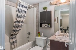 This cozy, 2 bed/2 bath, 854 sq ft unit is well lit with natural light due to its private corner location. It features A/C, a fireplace, stainless steel appliances, as well as a large wrap-around patio that is great for outdoor living and enjoying the city views. Your new home awaits in a vibrant neighborhood surrounded by the Ice District/Rogers Place Arena, MacEwan University, the LRT, and popular dining spots like the Lingnan, & Brew and Bloom. Additionally, the property offers heated underground parking; a valuable feature during the winter months in Edmonton. This property is popular due to its location and proximity to amenities. Come take a look!