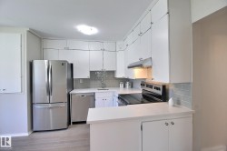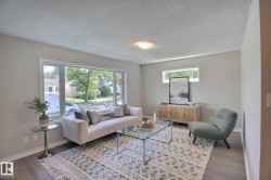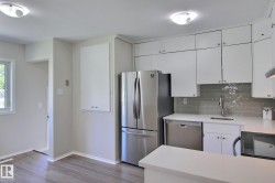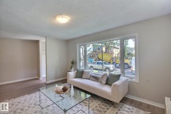 Updated 3-bedroom bungalow situated across the street from Edmonton’s sought after Highlands neighborhood. Freshly painted throughout with new vinyl plank flooring in the main living areas and new carpet in the bedrooms. The bright and functional kitchen features quartz countertops, newer stainless steel appliances, and plenty of cabinet space. The main 4-piece bathroom has also been upgraded with quartz counters. Upgraded vinyl windows provide for lots of natural light. Some of the pictures have virtual staging. The shingles, furnace <10 yrs old. It's ready to move in! The partly finished bsmt has low ceilings in parts, but great for additional storage and/or kids play area. Includes 2nd 3-piece bathroom. Extra wide fenced yard with apple tree, perfect for kids, pets, or gardening. A detached double garage adds great storage and parking space. Located near Eastglen Leisure Centre, the eclectic 112 Avenue shops, and scenic Ada Boulevard.