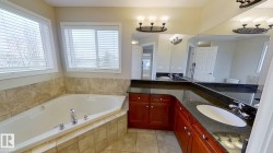 Stunning 4 bedroom home in Terwillegar Gardens, lovingly maintained by the original owner. Built by Parkwood Master Builder, this 2,392 sq. ft. two storey home shows quality craftsmanship and timeless design. A welcoming foyer with curved staircase leads to a bonus room, formal dining area, and cozy family room with corner gas fireplace. The bright kitchen has a central island, corner pantry, garburator, breakfast nook, and stainless steel appliances including a gas stove. Upstairs, the primary suite offers a walk in closet and private ensuite with corner tub, separate shower, and vanity. Three additional bedrooms provide space for family or guests. Additional features include main floor laundry, a half bath, and thoughtful upgrades. The unspoiled basement with three large windows offers future potential. Prime location near schools, parks, recreation centres, and quick access to Whitemud Drive and Anthony Henday