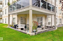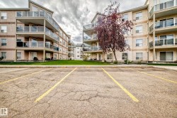 Looking for a lovely condo in the west end? This one is perfect! End unit on the main floor with LARGE WINDOWS that draw you into your open concept living room/kitchen and dining room. There is a KING SIZED PRIMARY BEDROOM w/ 4 PIECE ENSUITE, a second spacious bedroom, & additional 3 pc bath w/ corner shower. For the hot summer days, enjoy the CENTRAL A/C or your GROUND FLOOR PRIVATE PATIO on tranquil GREEN SPACE! For the cold day enjoy the GAS FIREPLACE and the TITLED HEATED UNDERGROUND PARKING w/ STORAGE LOCKER beside the stall PLUS there is a second SURFACE STALL RIGHT OUTSIDE THE UNIT! This adult only Building is PET FRIENDLY w/board approval, has ample visitor parking & amenities include EXERCISE ROOM, CAR WASH & SOCIAL ROOM. Condo fee includes heat, water & more. Walkable Location with Grocery, Pharmacy, Shopping, Bus, Future LRT, Terra Losa Lake, Senior Center, Churches & West Edmonton Mall close by. No more shovelling snow, chipping ice from your windshield or cutting grass!