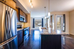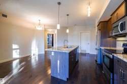 GREAT LOCATION RIGHT OFF 124TH ST — SPACIOUS 3 BEDROOMS, 2 FULL BATHROOMS, UNDERGROUND PARKING, CENTRAL AIR CONDITIONING, PET-FRIENDLY & NEAR TWO FUTURE LRT STOPS! Welcome to condo living at its finest in the desirable High Street District Properties, steps from the Brewery District, boutiques, cafés, and transit. This west-facing suite features an open-concept layout with 9' ceilings, engineered wood flooring, and large vinyl windows that fill the home with natural light. The modern kitchen boasts granite countertops, stainless steel appliances, and a large central island perfect for entertaining. Enjoy two full bathrooms— both beautifully finished—and a rare 3rd bedroom ideal for a home office or guest space. Top features include central air conditioning, in-suite laundry, and a titled heated underground parking stall. The pet-friendly building also offers a rooftop patio, secure access, and convenient proximity to two future LRT stops, adding even more value to this prime location