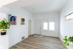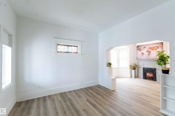 Located on a large corner lot, this property features flexible zoning suitable for residential living or small-scale commercial uses, including food and beverage service, health services, office space, or child care. Whether you’re seeking a comfortable home or a strategic business location, the options are impressive. Ideally situated close to NAIT, retail, parks, and the LRT, with quick access to Downtown. It’s also just a 10-minute drive to the University of Alberta, Royal Alexandra Hospital, and Rogers Place—offering excellent urban convenience. This charming detached bungalow provides generous living space with 4 bedrooms, 1.5 baths, and a half-finished basement. A double detached garage offers ample parking and storage. Character details include bay windows and a traditional layout with separate kitchen, dining, and living areas. The home also features a laundry room and a separate rear entrance to the basement.