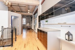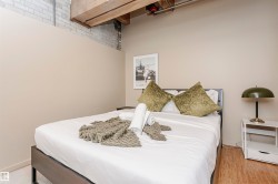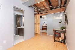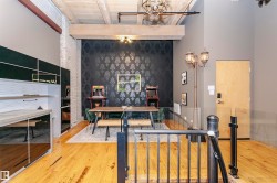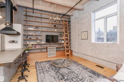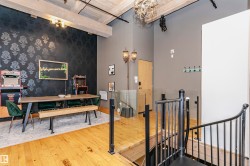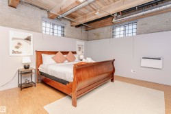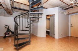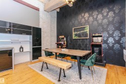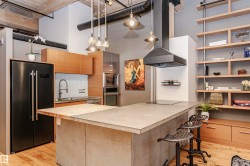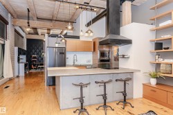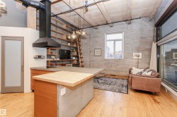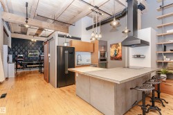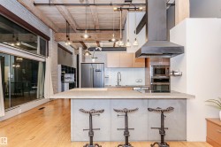HERITAGE MEETS MODERN IN THE ICONIC JOHN DEERE SEVENTH STREET LOFTS! Discover a rare blend of Edmonton history and contemporary design in this stunning loft, set within the heritage side of the historic John Deere Building—one of Downtown’s most recognizable architectural conversions. If you’re craving something truly unique, this urban sanctuary delivers. Spanning 1,776 sq. ft. over two dramatically designed levels, this loft embraces its industrial roots with exposed brick, original concrete elements, 13-foot ceilings, and beautiful hardwood floors. The spacious open layout features 2 bedrooms, 2 full bathrooms, and in-suite laundry, all wrapped in authentic character you won’t find in newer builds. The kitchen blends style with function, showcasing concrete countertops, modern cabinetry, and a layout perfect for entertaining. Enjoy the convenience and comfort of heated, secure underground parking—a must in downtown living. Located steps from Rogers Place, Ice District, and Farmers Market. WELCOME HOME.