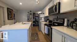 Unit 120, Gorgeous & Rare to find 3 Bedroom!! With THREE TITLED PARKING STALLS (2 Underground)!! The upgraded Kitchen is absolutely Timeless!! Large center island with stunning Quartz counter-tops, tile back splash, eating bar, with a whole lot of counter space & storage ..making this the perfect kitchen for entertaining as well as living! The Primary Bedroom is a good size with a his and her walk through closet leading to a full 4 pc en-suite!! In-suite laundry!! (Brand New washer and dryer!) The Low Condo fee Includes Heat and Water! (Average Power bill around 60$) Bedrooms 2 and 3 are on the other side of the suite. This suite has 2 Full 4pc Bathrooms total! Located close to schools and walking paths. Right across the street from Groceries and a wide variety of amenities all within short walking distance! Prime Location in the community of Charlesworth!! Close to the Anthony Henday as well as Ellerslie. Wash your car for free here! Secured Underground Parking with new Camera system