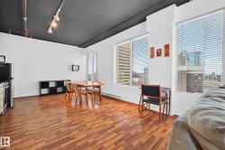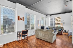 12th floor, FULLY FURNISHED and TURN-KEY READY CORNER-UNIT LOFT! INCREDIBLE INVESTMENT or FIRST TIME buyer OPPORTUNITY! AIRBNB COOPERATIVE building with an already high track record to maximize CASHFLOW! This unit has a current 4.8/5 rating with plenty of stellar reviews! AIR CONDITIONING, STUNNING 12th floor VIEWS, RARE and VALUABLE separate STORAGE, character BRICK walls and 6 LARGE WINDOWS! Stainless steel appliances, rustic decor and FULLY FURNISHED. Almost 600sqft and located perfectly with LRT access to everywhere you need to go, U of A, NAIT, Grant Macewan or throughout the core of Downtown. Steps to the River Valley, shops, restaurants its hard to beat the VALUE this property has to offer!
