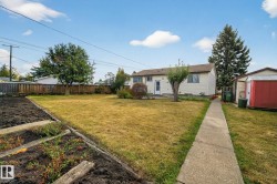 RARE MASSIVE LOT! Welcome to Kensington, a family-friendly community in north Edmonton. This charming bungalow sits on a huge pie-shaped lot (over 1,040 m²), a rare find in the city! The home offers four bedrooms (3 above grade), one full bath, and a finished basement with a large recreation room and additional bedroom. The bright main floor features a welcoming living room and functional kitchen overlooking the expansive backyard. Outdoors is a treat for any gardener, featuring a large, beautiful garden, fruit trees, and a double detached garage with ample space for vehicles, tools, or hobbies. Located just a short walk from Kensington School, close to shopping, parks, and public transit, this home is perfect for first-time buyers, investors, or anyone looking for a home with room to grow and a large back yard. Solid, well-maintained, and full of potential. This property is a must-see!