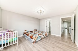 WELCOME to this modern and elegant custom built 4 bedrooms, 3 full bathrooms Landmark Homes in the heart of the Laurel community. This 2021 built comes with fully landscaped yard and fenced. The open-concept living room WITH HIGH CEILING seamlessly connects the great room, dining area and kitchen allowing easy interaction and entertaining. This home features a gourmet chef's EXTENDED KITCHEN with quartz countertop, chimney hood fan, glass door walk-in pantry, 9 FT CEILING, electric fireplace, full bedroom, 3 piece bathroom, EXTENDED ISLAND and vinyl plank on main and second floor except for stairs. The spindle grand staircase leads to upper level which hosts a bonus room, large primary bedroom with luxurious ensuite and walk-in closet, 2 additional bedrooms with extra large windows and 3 piece bathroom. The unfinished basement comes with side entrance and extra windows.