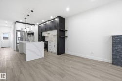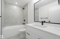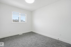 Located in the vibrant community of Delton, this brand-new half duplex offers approximately 1,614 sq ft across the upper two levels. Designed with functionality and income potential in mind, this home includes a 2-bedroom legal basement suite—ideal for rental income or multi-generational living. Open concept main floor living space with electric f/p in LR, large island in kitchen & main floor bedroom with a 3 pc bthrm. Upstairs hosts the primary suite and spa-like ensuite & w/i closet with built-ins. Two other good-sized bdrms, main bth & laundry complete this level. Featuring high-quality finishes throughout, including luxury vinyl plank flooring, ceramic tile, upgraded lighting fixtures, stainless steel appliances, quartz countertops, and 9-foot ceilings on all levels. Additional highlights include a spacious rear deck and a double detached garage. This is a fantastic opportunity to own a thoughtfully designed, income-generating home in a growing neighbourhood.