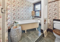 Welcome home to this charming two-and-a-half-storey character home nestled on a picturesque street in the heart of Westmount. Featuring four spacious bedrooms above grade, plus an additional bedroom in the basement, and two full bathrooms, this home blends historic charm, location, and space for the modern family. The interior showcases original character details, including timeless woodwork and elegant fixtures, complemented by newer Pella wood windows and a newer roof. Enjoy peaceful evenings on the beautiful front porch, ideal for relaxing or welcoming guests. Upstairs are four bedrooms and a full bathroom. The basement offers a rec room, fifth bedroom, and second full bathroom. A large, functional mudroom offers convenient storage & access to the backyard and double detached garage w/ loft. Situated within easy walking distance of vibrant shops and restaurants on 124 Street, parks, and schools, this property offers a rare combination of location, character, and comfort. Don't miss this Westmount gem!