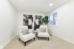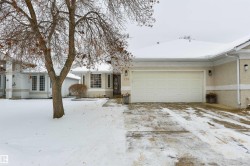 Experience refined, low-maintenance living in Ironwood Place, a quiet enclave in prestigious Westbrook Estates. This spacious half-duplex bungalow offers single-level living with beautiful golf course views and completely remodelled blending elegance with modern comfort. The bright living room features a gas fireplace and flows into a stylish dining area and updated kitchen. French doors open to a private deck, perfect for relaxing or entertaining. A front den provides a versatile space for a home office or TV room. The primary suite includes a walk-through closet and generous ensuite with custom glass and curbless shower while a second bedroom sits near a full 4-piece bath. Main floor laundry adds convenience. The FF basement offers a large rec room, oversized bedroom & 3 piece bath. Additional Updates include underground sprinklers and a newer cedar shake roof. Steps to the Derrick Golf & Winter Club, Amenities and Whitemud Ravine trails.
