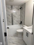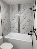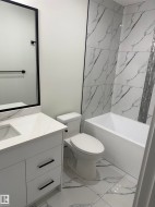 This brand-new, 2-storey half duplex features a modern open-concept living area with quartz countertops and a main-floor bedroom with a 3-piece bathroom. Upstairs, you'll find three bedrooms, including a Primary with an ensuite and walk-in closet, plus a laundry room and a 4-piece bathroom. The property also includes a 2-bedroom legal suite and a double detached garage. *Note that the property is currently still under construction.