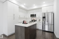 Everything you need in a home! 2+1 Bedroom, 2.5 bathroom townhouse with LOW CONDO FEES; available for quick possession! Come check out this modern, 2018 built unit in the heart of Kensington. This property is fully finished, ready for move in and includes a single detached 10' ceiling garage with an 8.5' garage door. The main floor features a spacious open concept layout, 9' ceilings, bright white kitchen cabinetry, white quartz and a gorgeous espresso flooring throughout. Upstairs you'll find a generous sized master bedroom with a cozy nook, 4 piece bath and bedroom. The basement is well laid out with an additional sitting room, bedroom and bathroom with tub/shower to complete the space. Great opportunity for a first time buyer, family or investor looking for an easy to rent out property. Quick access to the Yellowhead, with only a 15 minute commute to downtown. Steps away from Grand Trunk Park, schools and plenty of street parking. Condo corp is well managed and maintained!