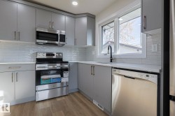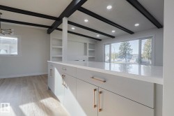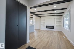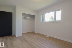FULLY RENOVATED & MOVE-IN READY! This gorgeous 5-bedroom bungalow on a HUGE lot in family-friendly Delwood has it all! Every inch has been beautifully updated with modern style and high-end finishes — stunning vinyl plank flooring, pot lighting, & quartz counters. Newer windows, furnace (2020), HWT (2023), and softener (2023). You’ll love the bright open layout with vaulted ceilings, exposed beams, and a sleek linear fireplace. The chef’s kitchen shines with quartz counters, stainless steel appliances, elegant cabinetry, and a breakfast bar overlooking the spacious living room. Three generous bedrooms and a designer bathroom complete the main floor. The SEPARATE ENTRANCE leads to a fabulous finished basement with 2 bedrooms, a big family room with custom WET BAR, luxury bath with glass shower, and plenty of storage. Enjoy the large fenced yard, patio, DOUBLE garage and let's not forget the CENTRAL A/C!!. Close to great schools, shopping, and parks — this stylish home is the total package!