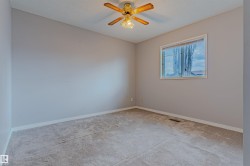 Welcome to this stunning 3-bedroom bi-level tucked away in a quiet cul-de-sac! With a bright, spacious floor plan and a prime location, this is the perfect family home. The large peninsula kitchen features granite countertops and ample workspace. The dining area is ideal for entertaining, with patio doors opening to a covered deck that doubles as a cozy sunroom. The living room boasts vaulted ceilings and large windows for natural light. The primary suite includes a walk-in closet and private 3-piece ensuite, with two more bedrooms and a 4-piece bath completing the main floor. The finished basement offers a large family room with a wood-burning fireplace—perfect for relaxing or hosting. Enjoy the covered deck overlooking the backyard, plus an attached garage and huge rear pad for RVs. Shingles replaced in 2024. Close to schools, parks, shopping, and the Anthony Henday.