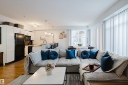 Welcome to this spacious 1,100+ sq. ft. corner-unit condo in the desirable community of Empire Park! This bright and inviting 2-bedroom, 2-bathroom home offers an open-concept floor plan with an abundance of natural light, thanks to the large windows throughout. Beautiful hardwood flooring flows through the main living areas. The spacious primary bedroom features a 4-piece ensuite, a walk-in closet, and an additional sliding-door closet for extra storage. The second bedroom includes a full-sized built-in closet and is perfect for guests, a home office, or family. Additional features include in-suite laundry, a second 3-piece bathroom, and one titled underground parking stall with a storage cage. Enjoy outdoor living on the oversized deck, ideal for BBQs and relaxing evenings. Located in a prime area, this home is close to shopping, the Southgate LRT Station, public transportation, schools, and many other amenities.