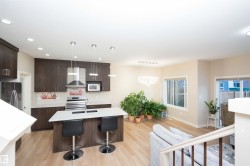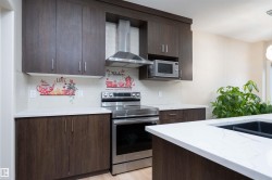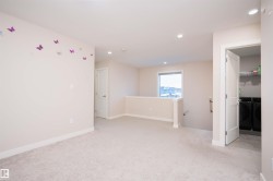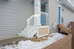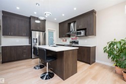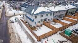 Beautifully crafted corner-lot Half Duplex nestled in a peaceful Edmonton community, offering 5 bed, 3.5 bath & double attached garage. Upgraded quartz countertops and upgraded electric fixtures throughout the house. The bright & spacious main level features living area with fireplace, kitchen with walk-through pantry, island seating & dining space and a convenient half bath. Upstairs, relax in the luxurious primary suite with indent ceiling, walk-in closet and spa-like 5-pc ensuite, along with two additional bedrooms, a 4-pc bath, laundry & a versatile bonus room. The fully finished basement with a separate entrance adds incredible flexibility, featuring 2 bedrooms, a 4-pc bath, separate laundry & a functional kitchen/living area. Close to parks, ponds, ravines, scenic walking trails, schools, shopping, dining & public transit, with quick access to Hwy 2, 20 mins drive to YEG Airport, Premium Outlet Mall & 10 mins to South Common. A rare corner-lot opportunity in a serene yet connected location.