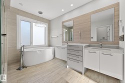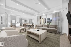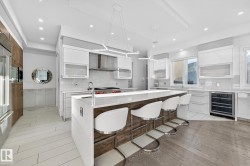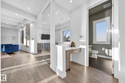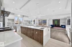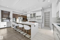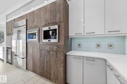 Exceptional custom-built home on a wide, tree-lined street in prestigious Parkview- one of Edmonton’s most sought-after neighbourhoods. Surrounded by newer homes, this property offers privacy & long-term value. Offering over 4,600 sq. ft. of refined living space, the home showcases quality craftsmanship & thoughtful design throughout. The main floor features open-concept layout ideal for entertaining, highlighted by a chef’s kitchen w. premium cabinetry, Sub-Zero & Wolf appliances, oversized island, spacious living & dining areas & a versatile den. Upstairs offers a luxurious primary retreat w. 5 pce ensuite & walk-in closet, two add’l bedrooms w. ensuites, an additional office & upper laundry. Fully finished basement includes a large rec room w. wet bar, home gym, additional bedroom, 4pce bath & ample storage. Enjoy the private backyard with covered deck & built-in fireplace perfect for all seasons. Complete w. Sonos sound system & oversized heated triple garage making this your next perfect family home!