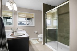 Welcome to your dream home! This stunning 1,975 sq ft two-story perfectly blends style, comfort, and practicality. The chef’s kitchen boasts brand-new 2025 appliances, including an induction stove, microwave hood fan, and a spacious fridge with ice and water dispenser. Upstairs features 3 generous bedrooms, 2 full baths, plus a main-floor half bath. The partially finished basement includes plumbing for a future bathroom. Step outside to a massive 12'x21' deck—ideal for entertaining—and enjoy raspberry and haskap bushes in your yard. Two sheds (custom with wide doors + 7'x7' vinyl) provide ample storage. With central A/C (2023), a heated garage (2024) with smart door, and easy access to top schools, shopping, and the Anthony Henday, this move-in-ready home truly has it all!