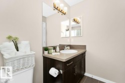 Welcome to this gorgeous 3 bdrm 2.5 bath central air conditioned two-storey home with double detached garage. It features a striking front façade with floor-to-ceiling windows. Interior glass panels highlight the open space from basement to main floor. The home's design is open and airy with the living room centering around a gas fireplace, adding warmth and ambiance to the space. The gourmet kitchen is complete with contemporary finishes, high-end stainless steel appliances, and a large eat up island with the dining area dressed with a bank of windows. Upstairs, you’ll find the 3 well-proportioned bedrooms, with the primary featuring a walk-in closet and 4 pce ensuite. On the landing between the main floor and lower level is home to the half bath.The lower level offers a great rec area and utility room, housing the front load laundry duo. A massive deck expands from the house to the garage, offering a perfect space for outdoor dining, lounging, and entertainment, accompanied by smart landscaping choices.
