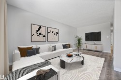 Step into this beautifully renovated raised bungalow that blends modern style, complete with a bright in law suite and separate side entrance, perfect for families, multi generational living, or savvy investors. The main floor features a sun filled living room with a large window, luxury vinyl plank flooring, three spacious bedrooms, a stylish 4 piece bath, private laundry, and a stunning kitchen with quartz countertops, backsplash, ceiling height cabinetry, and a premium Samsung appliance package. The lower level offers oversized windows, a full kitchen, generous living space, three bedrooms, separate laundry, and its own private entrance. Outside enjoy a fully fenced yard, private patio, double oversized garage, and a concrete RV parking pad. Upgrades include a high efficiency furnace, quick recovery hot water tank, and a brand new roof, all close to schools, parks, lakes, shopping, and quick Henday access.