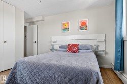 Bright Top-Floor 1 bedroom 1 bathroom with West-Facing Views - Perfect for first-time buyers or investors. Located on the top floor of Oakwood Towers, this 674 SqFt unit features an efficient open-concept layout with west-facing city views from your private balcony. The kitchen is equipped with stainless steel appliances and offers ample storage, while the living and dining areas flow seamlessly together. The sun-filled bedroom includes generous closet space, and in-suite storage adds extra convenience. Condo fees cover heat, water, electricity, exercise room, a heated underground parking ($80 included in condo fees but optional), and more! Enjoy a well-managed building in an incredible location, just minutes from parks, the River Valley, public transit, restaurants, shopping, and more.