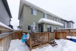 This delightful DesRochers half duplex is perfectly positioned in a family-friendly location, just steps from the K–9 school and nearby parks, and only minutes to the high school, shopping, restaurants, and everyday amenities. Offering over 1,540 sq.ft. of thoughtfully designed living space, the home features a double attached garage and a fully fenced backyard with a deck, ideal for outdoor relaxation. A spacious foyer welcomes you inside, with a convenient half bath tucked near the garage entry. The open main floor is designed for easy living and entertaining, flowing from the comfortable living room into the dining area, where a garden door opens to the deck. The kitchen is both stylish and functional with granite countertops, an island, corner pantry, and included appliances. Upstairs, the private family retreat continues with a generous primary suite featuring a walk-in closet and full ensuite. Two additional bedrooms, a second full bathroom, and a dedicated laundry room complete the upper level.