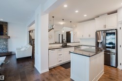 Welcome to this stunning 2-storey in McConachie offering over 3,200 sq. ft. of living space. The main floor features an upgraded kitchen with ample cabinets, a bright dining area, and a spacious living room with a gas fireplace. Upstairs includes a large bonus room, 3 bedrooms, a full bath, and a primary suite with walk-in closet and ensuite. The fully finished basement adds a roomy bedroom, full bath, family room with an electric fireplace, and flat-finish ceilings. Enjoy a fully landscaped and fenced yard, central A/C, double attached garage, and fresh paint throughout in 2022. Close to all amenities and move-in ready.