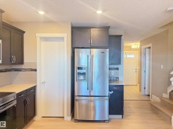 Welcome to the well-maintained half duplex home in the neighbourhood of Rapperswill. Newly renovated vinyl flooring from main floor up to the second floor. A wide space living area with good size window that gives a natural light inside the home. Stainless steel appliances in the kitchen with walk-out pantry. The primary bedroom has a walk-in closet and 4 pieces ensuite bathroom. Well sized second and third bedroom and a 4 pieces main bathroom with tile floors. The basement is undeveloped and could easily be turn into whatever the new owner would like. Can turn into a 2 bedroom basement and a full bathroom if wanted to. Furnace is serviced last July 2025 with humidifier and HRV system. Single garaged attached and a pad outside that can fit another car. Huge backyard that is great for family activities with fire pit and or can be turned into a beautiful garden. Near shopping centers, bus stops, play ground and schools. Easy access to Anthony Henday via 127 street. A great home for sure you will love.