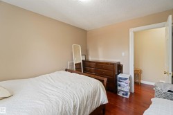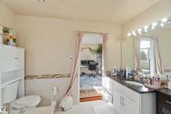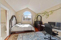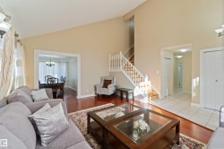 Air-conditioned 3 bedroom plus den with 4 bathrooms could be yours. This spacious home has room for the whole family and extended family, featuring a developed basement with a second kitchen. As you enter, you’ll be greeted by 22-foot vaulted ceilings, gleaming hardwood floors, and elegant moldings. The main floor includes laundry, a guest bath, living room, formal dining area, and a beautiful kitchen with granite counters and plenty of storage. There’s also a cozy family room with a wood-burning fireplace and patio doors leading to a huge backyard with a party-sized deck—perfect for gatherings and kids to play. Upstairs, the master suite offers a jacuzzi tub and separate shower in the luxurious ensuite, while the other two bedrooms share their own full bathroom. Recent updates include new shingles, a new furnace, and fresh paint throughout. Located close to schools, shopping (West Edmonton Mall), and major routes like the Anthony Henday, this bright, custom-built home in family-friendly community.