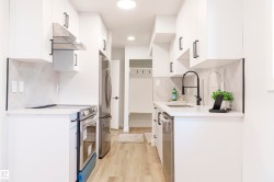 Fully renovated from top to bottom, this stylish 3 bedroom, 2 bathroom condo delivers modern living with quality upgrades throughout. The stunning kitchen features brand new stainless steel appliances, fridge, stove, dishwasher, hood fan, washer and dryer, all under full warranty, plus new cabinetry and sleek quartz countertops. The open living space is elevated by a tiled feature wall and contemporary electric fireplace. Enjoy new carpet, durable vinyl plank and tile flooring throughout. Both bathrooms have been completely redone with new tubs, toilets, vanities, fixtures, and wall and floor tile. The bright lower level offers a spacious rec room and a full 4 piece bath. Additional highlights include a newer furnace, low condo fees, fenced backyard, and single parking stall. Located minutes from West Edmonton Mall, schools, parks, and transit. Just move in and enjoy.