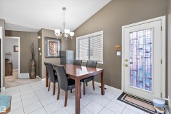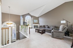 Welcome to the exclusive gated community of Village Green in desirable Twin Brooks. Nestled on a quiet street away from the hustle and bustle of the city, but still having access to public transit, shopping and schools. This stunning bi-level features soaring vaulted ceilings as you step into the home, showcasing the spacious open concept living. The livingroom has a cozy corner gas fireplace and large bay windows. The kitchen has expansive countertops with an eat up bar and newer dishwasher, fridge & microwave hood fan as well as a corner pantry. Functional dining space opens onto your private deck with access to your manicured lawn; maintained by the condo! The main floor has 2 bedrooms, 4 piece main bath and primary has ensuite & walkin closet. Basement has large windows, big family room, large 3rd bedroom and another full bathroom! Attached garage is perfect for winter! Also has A/C! The community is quiet & features greenspace.