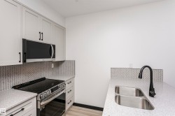 Parkside Court where living is relaxed. This completely renovated 2 bedroom, 1 full bath condo has been reimagined to feels better than new. Offering 980 sq. ft. of open, sun-filled living, Every detail has been updated: new flooring, cabinets, quartz island, appliances, tiles, light fixtures, and a fully renovated bathroom with modern finishes. The sleek kitchen quartz island flows effortlessly into a spacious living and dining area, perfect for hosting friends or enjoying a quiet evenings. Large windows, a generous balcony with a gas hookup bring the outdoors ideal for morning coffee or summer BBQs. Both bedrooms are lg bright and roomy, & in-suite laundry adds everyday convenience. A titled underground parking stall keeps your vehicle safe and warm year round. Just steps from cafés, shops, groceries, and transit, this home combines style, comfort, and location in one move in ready package. Condo fees are $429.76 monthly. Pets allowed with approval.