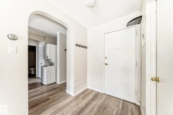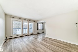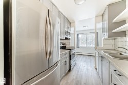 One Bedroom and one bathroom unit in sought-after Royal Gardens! This updated 701 sq. ft. condo offers privacy and natural light with an open layout. Bright windows fill the open-concept living and dining area, and the galley kitchen features modern cabinetry with stainless steel appliances. The entire unit has newer vinyl flooring and features a newer washer/dryer combo for in-suite laundry. Patio doors lead to a private balcony with open views of the peaceful courtyard and walking path. Enjoy in-suite laundry, oversized storage, in a well-managed, pet-friendly building with condo fees including heat and water, along with an in-complex exercise facility. Prime location close to the University, LRT, Southgate Mall, shopping, schools, daycares, and Whitemud Drive. Ideal for professionals, students, or investors.