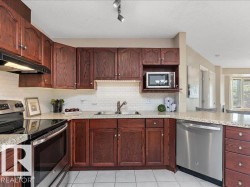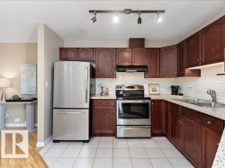 Located in the heart of Rossdale, stones throw to our iconic River Valley and Legislative Grounds you'll find this gorgeous condo. Featuring 2 bedrooms , 2 full bathrooms, large peninsula style kitchen with loads of cabinets, breakfast bar, newer Corian countertops (also done in both bathrooms), ceramic flooring & spacious dining area. The livingroom has a cozy gas fireplace, upgraded laminate flooring, numerous SW windows that provide much sunlight and access to spacious circular balcony. Good sized bedrooms, ample storage , newer central air-conditioner/furnace, 6 appliances and 1 underground parking stall (53). Just minutes to many of Edmonton's finest attractions including Rogers Arena, Folkfest, Accidental Beach, dining, grocery as well as the University & LRT System. In 2015 the building went through a major upgrade: stucco off to 40 year "Hardie Plank" board, roof, attic insulation, windows, balconies/railings & dura-decking. Reasonable condo fee's incl heat and water. See today!