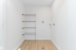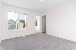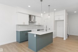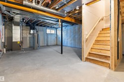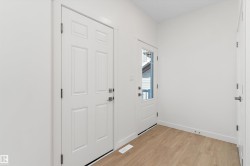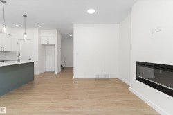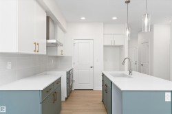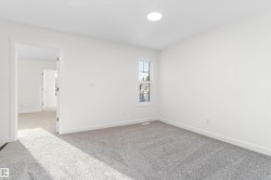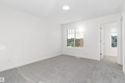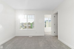 Welcome to the Ascend 22 by Sterling Homes, offering modern finishes and efficient design. The main floor features luxury vinyl plank flooring, 9’ ceilings, an inviting foyer with large coat closet, and access to the double attached garage with floor drain. The open-concept kitchen, great room, and nook include quartz countertops, island with flush eating ledge, Silgranit undermount sink, built-in microwave, chimney-style hood fan, full-height backsplash, upgraded Winston cabinetry with soft-close doors and drawers, and a corner pantry. Large rear windows, garden door, and electric fireplace brighten the space, plus a convenient half bath. Upstairs offers a primary suite with walk-in closet and 4-piece ensuite with double sinks and glass shower, a central bonus room, main bath, laundry, and two additional bedrooms. Separate side entrance, basement rough-in, brushed nickel fixtures, and Sterling Homes’ Signature Specification included.