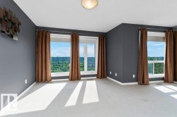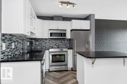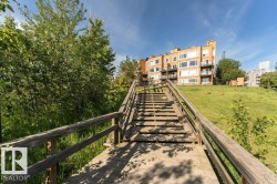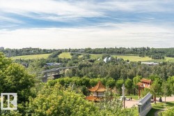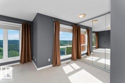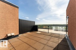 Discover this beautifully maintained, air-conditioned two-storey townhouse with a private rooftop deck and stunning river valley and downtown views. Located at the back of a gated 18+ complex. The home includes one secure underground parking spot with a storage locker and an additional above-ground stall in front of the unit. Walking distance to the River Valley and City Centre, this modern 2-bedroom features an open-concept design. The recently remodeled main level boasts a bright European-style kitchen with an island, a spacious living room with a gas fireplace, and a dining area opening to a glass-enclosed private balcony with a natural gas connection. There's also an open den/family room and a 3-piece bath. Upstairs, find a utility/laundry room and two large bedrooms, including a primary with a sitting area, walk-in closet, and spa-inspired ensuite with a jetted tub and corner shower. Additional storage has been added throughout. This home has been professionally painted and professionally cleaned.