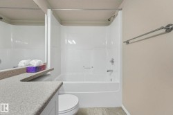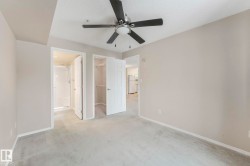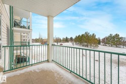 This 2 BED, 2 BATH, 2ND FLOOR unit with a functional layout feels instantly welcoming. Enter to find an open concept space that seamlessly connects the dining area, kitchen, living room, and BALCONY overlooking green space; perfect for fresh air, a BBQ, and private outdoor space. The 2 bedrooms are on opposite ends of the unit for maximum privacy; the primary bedroom includes a WALK IN CLOSET and ENSUITE. The unit features IN SUITE LAUNDRY for convenience, with HEAT and WATER INCLUDED in the condo fee to help maintain predictable costs. It also comes with 2 TITLED PARKING STALLS (1 UNDERGROUND and 1 surface) and a STORAGE LOCKER and visitor parking for when friends visit. This adult only building offers a social room and ELEVATOR, simplifying moving in and everyday activities. Steps from the river valley, walking trails, groceries, parks, and recreation facilities, and with a bus stop just two minutes away, this home provides a serene, connected environment that enhances daily living. Virtually staged.