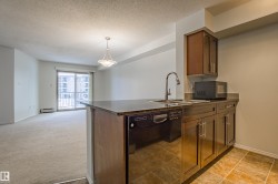Welcome to 222 Elements at McConachie II & this Charming 2nd Floor 2 BED, 2 BATH Condo boasting nearly 775ft2 of Living Space. This home is Perfect for Investors, Professionals, or 1st time buyers! Live your best life in this INVITING & OPEN floorplan, thoughtfully designed for comfort & convenience. 2 Large Bedrooms and 2 FULL baths. Enjoy the convenience of INSUITE laundry & Built in storage . The Modern Kitchen allows you the space to COOK & ENTERTAIN in style w/dark cabinets, granite countertops, a double sink & sleek appliances, all enhanced by elegant, tiled flooring. Large windows provide plenty of natural light, creating a warm & cheerful atmosphere. Convenient Surface Parking Stall is visible right from your unit for added Safety and Convenience! Close to schools & shopping, with easy access to Henday. This pet-friendly, WELL managed building offers easy access to transit, shopping centres, parks and all amenities. LOW Condo Fees include Heat and Water too! Some pics are Virtually Staged!