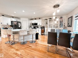 This Beautiful 2 storey home is located on a large corner lot in the prestigious community of Charlesworth, with easy access to Anthony Henday, close to parks, schools, shopping center, public transportation. This well-maintained home offers AIR CONDITIONING, and an INSULATED & HEATED 2 car garage. The main floor features an open concept floor plan with hardwood flooring. The kitchen is contemporary in style with a large island. A good size dining room is overlooking the fully fenced fabulous backyard. The backyard is landscaped and has professionally custom build deck. Upstairs features with UPSTAIRS laundry, 3 bedrooms, and the master bedroom with his/her closet and 4 pc ensuite. The fully finished basement is professionally developed to a salon space. Do not miss this unique opportunity.