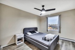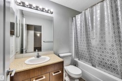 Immaculate top-floor 2 bed, 2 bath condo with stylish vinyl plank flooring throughout and a beautifully upgraded kitchen featuring stainless steel appliances, quartz countertops, and an oversized island. Enjoy the convenience of in-suite laundry within a full storage room, and a covered balcony with open views toward Rabbit Hill Shopping Centre. Just steps to transit, Freson Bros, Shoppers Drugmart, banks, schools, restaurants, park—and only 2 minutes to the Henday. Located in the newer building within the complex and complete with heated underground titled parking, this home is the perfect move-in-ready package!