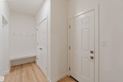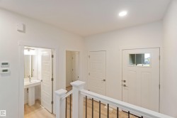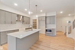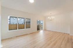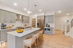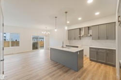 Welcome to The Allure by Sterling Homes, a refined home designed for modern living. The main floor offers luxury vinyl plank flooring, 9’ ceilings on main and basement levels, a double attached garage with added width and floor drain, and a separate side entrance. The kitchen features quartz countertops, an island with flush eating ledge, undermount sink, over-the-range microwave, full-height tile backsplash, soft-close cabinetry, and a walk-through pantry connecting to the mudroom and garage. Large windows and sliding patio doors brighten the great room and nook, while a mudroom with built-in bench and a half bath complete the main level. Upstairs includes a spacious primary suite with walk-in closet and 5-piece ensuite, a bonus room, laundry area, main bath, and two additional bedrooms. Upgraded railings, basement rough-in, and Sterling Homes’ Signature Specification are included.