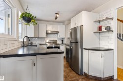 Exceptional value! This 4-Level Split in Bannerman offers 1,800+ SqFt of living space with 4 bedrooms & 2 full baths on a massive pie lot! Open-concept living/dining with hardwood floors & upgraded lighting. Kitchen features refaced doors (2020), concrete countertops, stainless steel appliances, NEW stove & fridge (2024), dishwasher (2018), plus views of your NEW deck with railing & privacy fence (2024). Upper level: 2 large bedrooms incl. the primary with bamboo hardwood & upgraded 4pc bath. Lower levels: 2 more bedrooms, upgraded 3pc bath, renovated basement (2024), family room a separate laundry room (washer/dryer 2023). Massive 24x27 garage (roof 2017) which can fit 3 vehicles. Other upgrades: TRIPLE PANE WINDOWS, siding/soffits, AC (2021), furnace (2019), , new chain-link fence (2024), driveway leveled/sealed (2024), landscaped backyard (2024), closets (2021 & 2024), new small window (2017). Quick access to Henday & Yellowhead. Don’t miss this one!