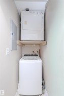 This bright and spacious condo offers the perfect combination of comfort and convenience. Located on 3rd floor with elevator access, the unit features in-suite laundry, a welcoming spacious entry with dining area, and new laminate flooring. The kitchen boasts white cabinetry, ceramic tile backsplash, and a convenient pass-through opening, ideal for entertaining guests. Sliding balcony doors fill the unit with natural light and offer a beautiful view from the balcony. The king-size primary bedroom includes a walk-in closet leading to a private ensuite 4-piece bathroom, while the second bedroom, located at the opposite end of the unit, has easy access to another 4-piece bathroom, providing privacy for family and guests. Both the bedrooms and walk-in closet is carpeted. Located in a quiet, non-crowded and beautiful neighborhood, just 3-minutes drive to Millwoods Town Centre, No Frills, Grey Nuns Hospital and LRT Station, close to schools, and within walking distance to parks.